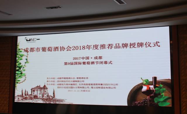 闭幕式上,成都市葡萄酒协会副会长吴忠、罗建峰、侯军、吴八斤、阳光分别为这30个推荐品牌颁发了证书。